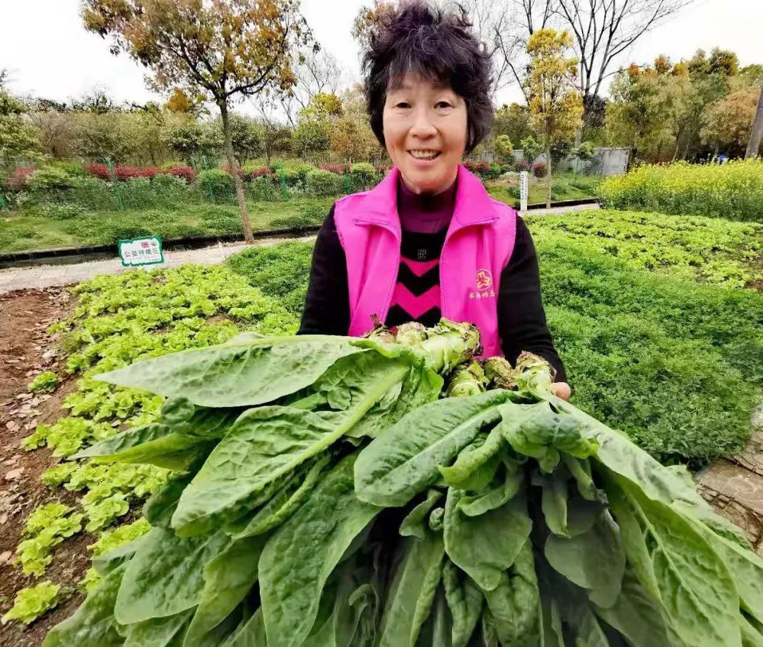 “蔬菜品种多得不得了,有菠菜、大蒜、卷心菜、莴笋、生菜、黄瓜、茄子、刀豆、豇豆、空心菜……”颇有种地经验的她们,三下五除二就将这一亩小菜园分割成20余块小长方形,并命名为“同心菜园”,寓意五姐妹同心协力把小菜园的事干好。就这样,在五姐妹精心的呵护下,菜园的整体面貌焕然一新。看着眼前一派丰收的景象,潘阿姨笑着说“从菜籽播种下去,慢慢地看它们长出来,发芽长大,一片绿油油,看上去真的很舒服。”
