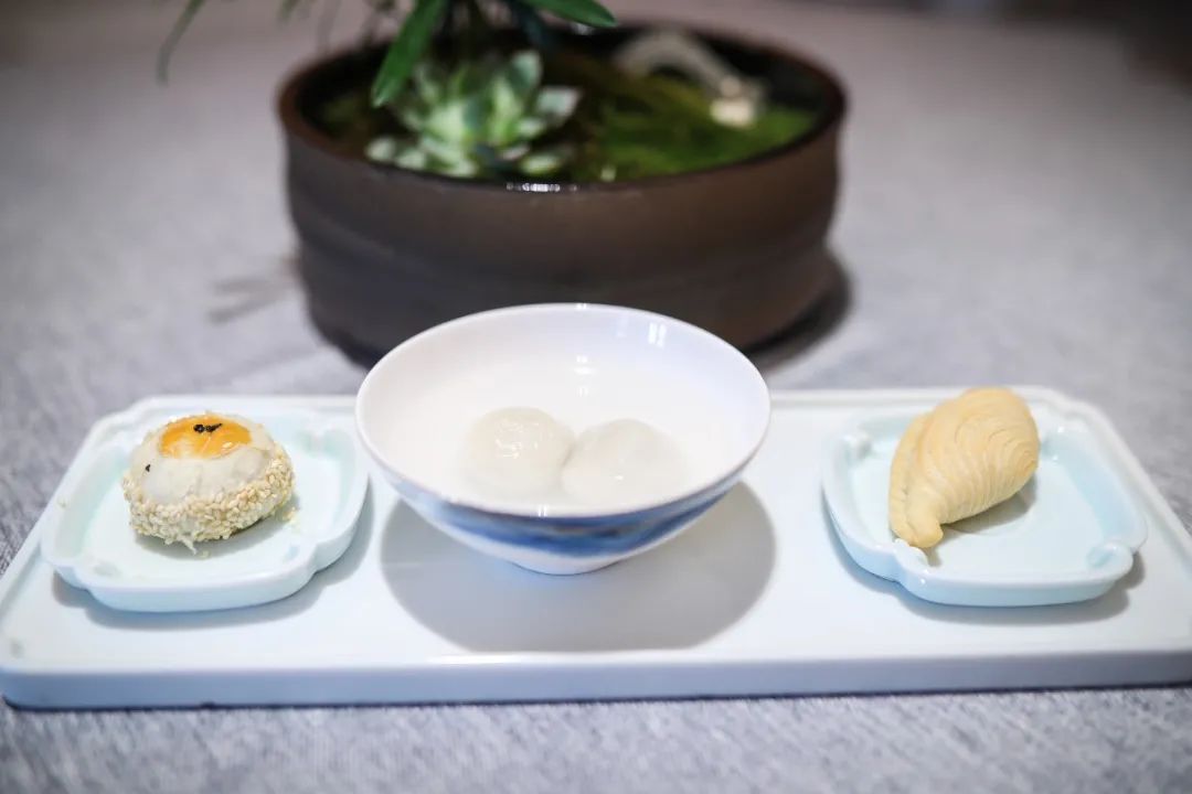 14道点心,既要道道美味,却又不能量太大。厨师们就将这些点心做得小巧玲珑,一口一个。于是,具有海派特色的“微型点心”出笼了。