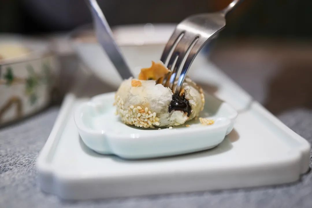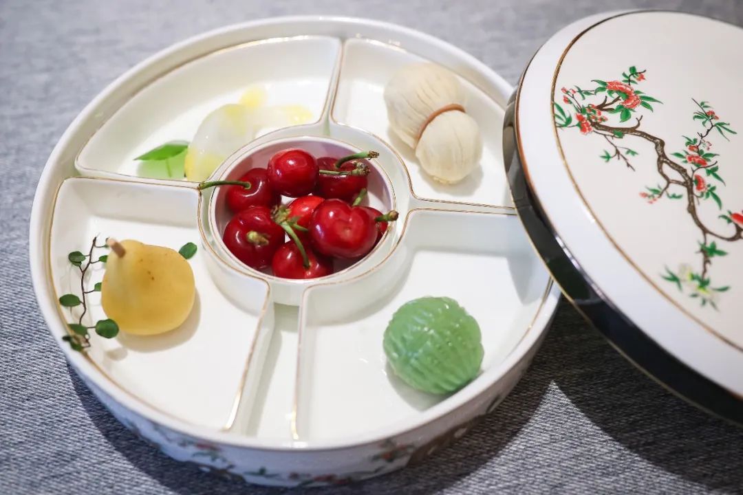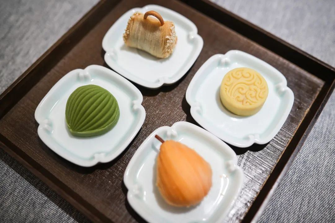 比如,首届进博会欢迎晚宴上的“荷韵套点”必须提前预约。因为藕酥有三段,每段都是不同馅料;锦鲤糕栩栩如生,鱼鳞靠吸管一个个掐出来。因为太费功夫了,这个组合价格要高一些,68元。