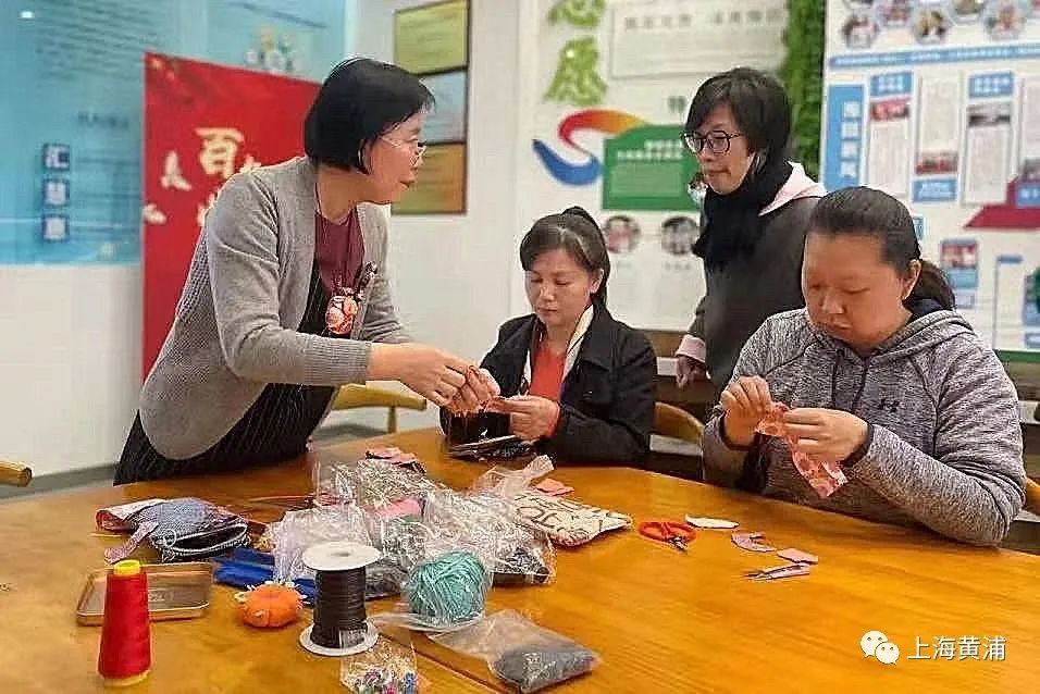 老师教导市民学员穿针引线