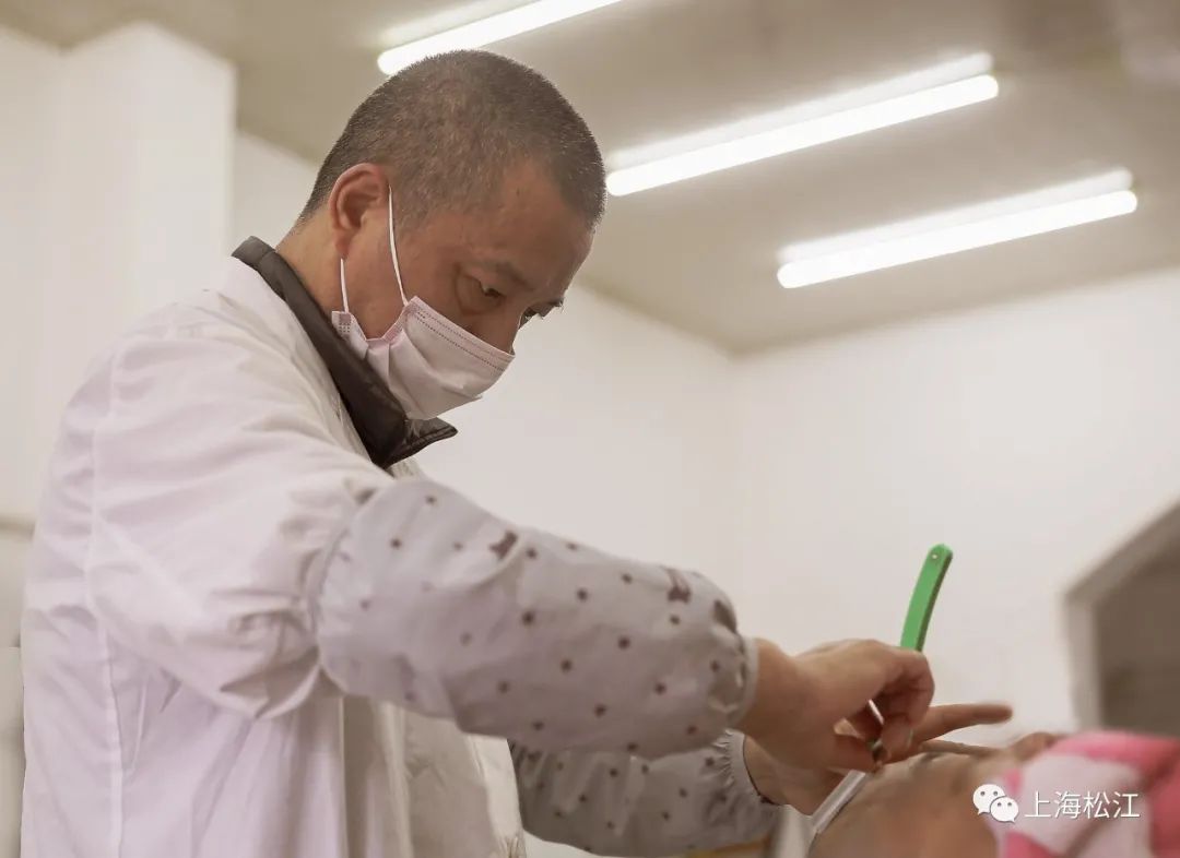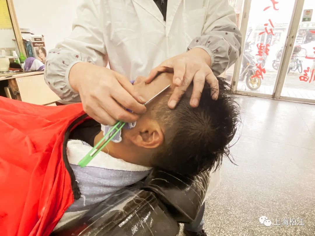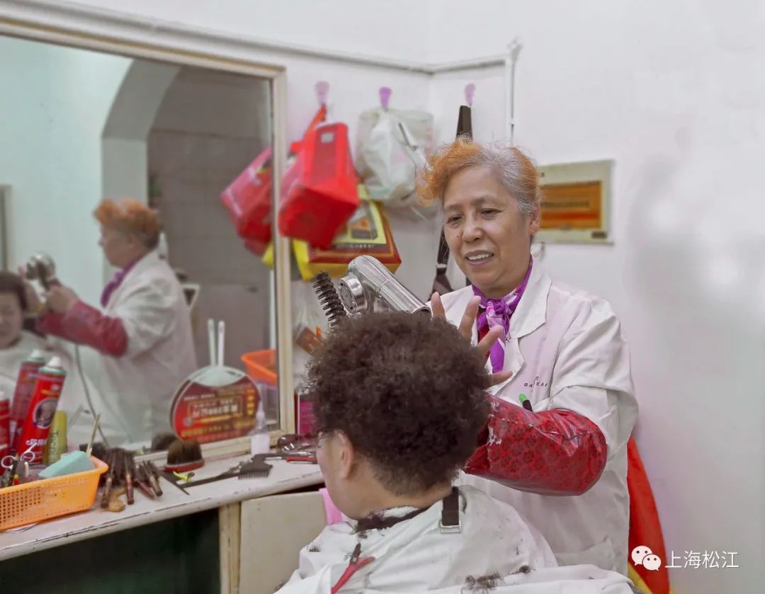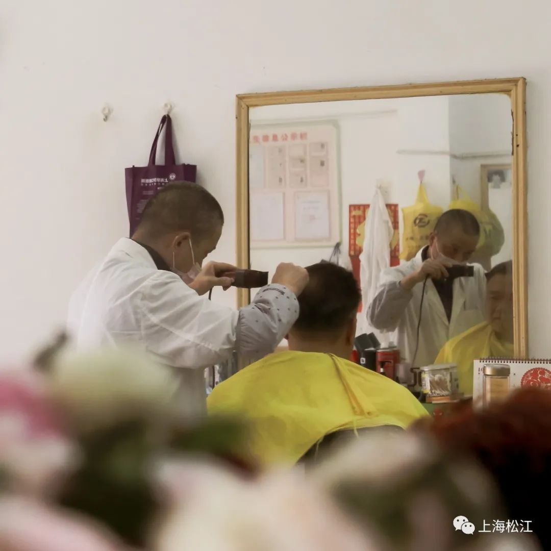 除了周边,直到现在还有专从市区赶来的老客,以前住松江剪惯了。有搭子女车来的,有辗转地铁、公交,剪个头就走的。其实就是想回来听听松江的事。