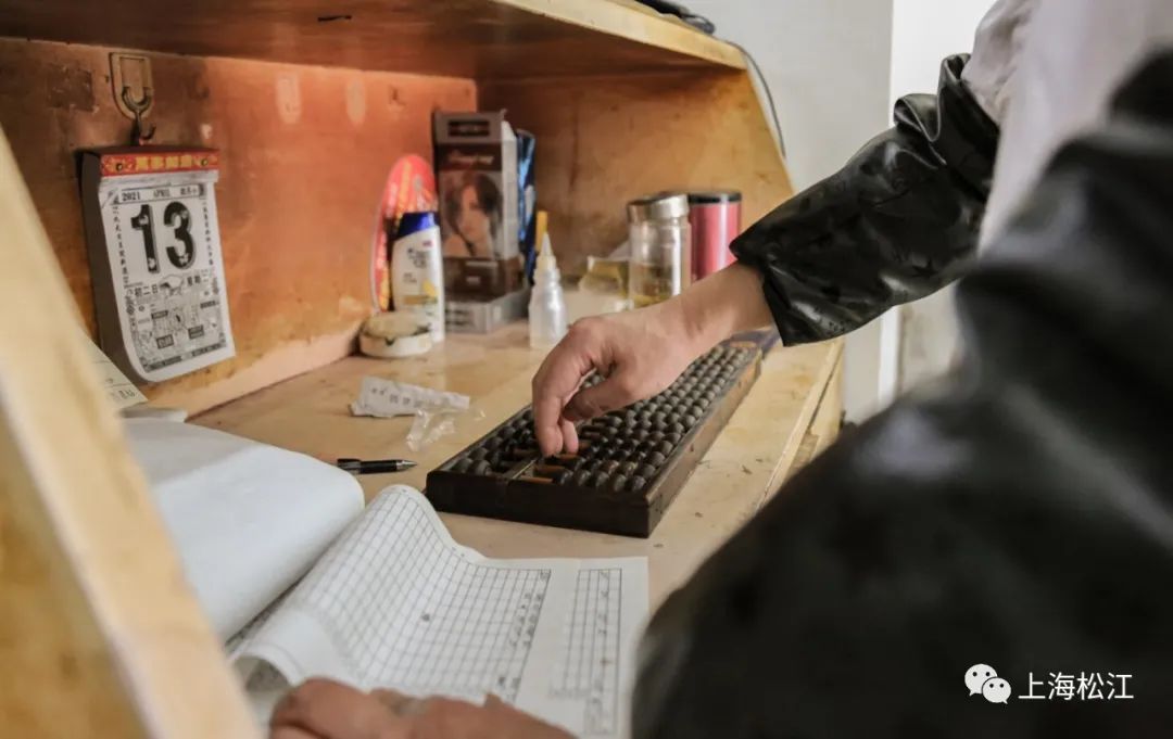 浅黄色的柜台说是收银,就是张老桌子,还对着门口。算账用的还是老式算盘,沐广祥噼里啪啦拨动算盘珠,比一般人用计算器还快。围着柜台转一圈,也没见着支付宝二维码。