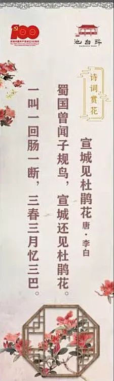 中华文化博大精深,古诗词更是璀璨多姿,市民游客可在游园赏景的过程中,品读和杜鹃花有关的古诗词,透过诗句,感受古人在赏花心境时的诗情高志。