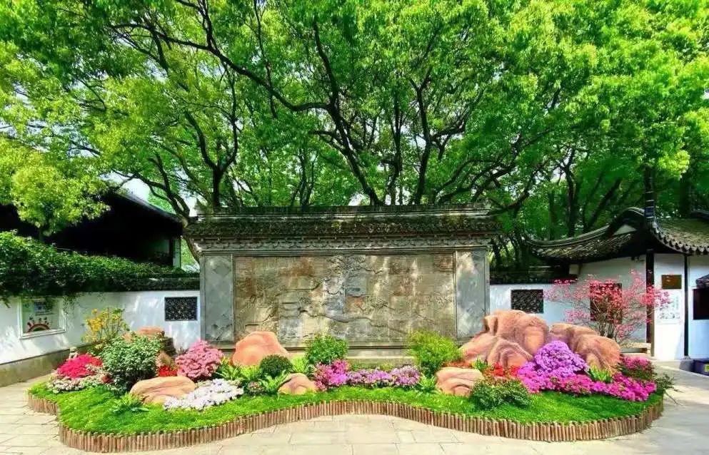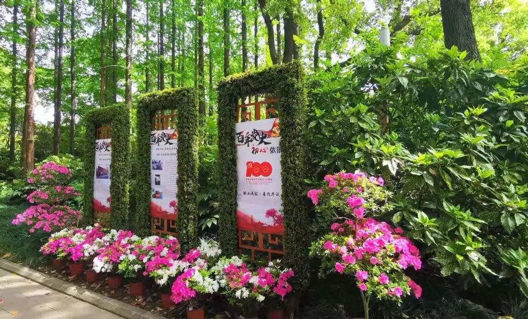 花展期间,醉白池融合松江红色文化资源,传承红色基因,在外园主干道以绿雕组屏的形式,向市民游客呈现一段段党的光辉岁月中,伟人,英烈与松江的故事。