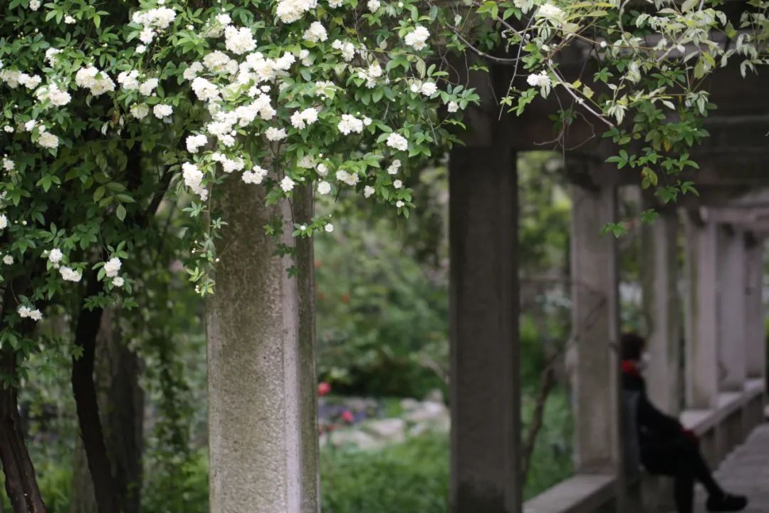 在春日绚烂的韶光中,素洁小巧的木香可能并不起眼,但是正是这份素洁调和了色彩斑斓,让古猗园的春日更多了层次之美。