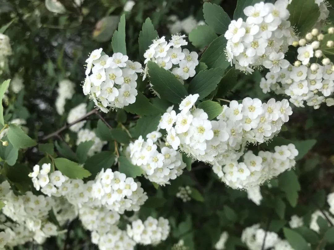 在鸳鸯湖畔有不少白花的绣线菊,洁白成团,仿若雪落在枝上。除了白色的绣线菊,在古猗园花坛边缘、道路角隅粉墨登场的小粉花是光叶粉花绣线菊,也就是俗称的红花绣线菊。