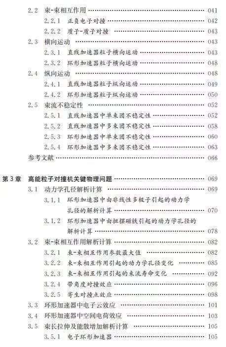 高能粒子对撞机是粒子物理研究和探索宇宙深层次物质结构的最为重要的研究工具。高能粒子对撞机是一个复杂的加速器系统,由各种加速器构成。对撞机加速器主要由直线加速器和环形加速器构成。对撞机加速器物理涉及直线加速器物理和环形加速器物理,相关加速器物理既涉及单粒子及多粒子运动规律,又涉及加速器结构中电磁场及带电粒子与加速器结构之间的相互作用。对撞机加速器物理的特殊性在于需要研究相互对撞的粒子束中粒子的运动规律。描述对撞机加速器系统中的带电粒子运动的哈密顿量既包含线性部分又包含非线性部分,既包含非周期运动又包含周期运动,在这样复杂的单体和多体动力学系统中既存在稳定运动也存在不稳定运动和混沌运动。因此,对撞机加速器物理属于加速器科学,研究和把握带电粒子运动的物理规律需要建立一系列相关动力学理论和解析公式,需要采用相关程序进行数值计算研究。然而,对撞机加速器物理的核心还是相关的加速器理论,这个是对撞机优化设计的基础,也是采用程序进行数值计算,理解数值计算结果,进而与实验进行比较验证的基础。然而,自对撞机发明至今,尽管很多现象在实验上得以发现,并在数值计算中得以确认,但是很多关键的加速器结构理论问题、加速器粒子动力学问题、对撞束流的相互作用问题以及对撞机系统的优化设计问题等均没有得到深入有效的研究。即使在加速器物理研究的很多领域已经取得了重要成果,但是这些前沿知识只是停留在分散发表的文献中,没有得到系统的、教科书式的广泛和有效的宣传,使这些研究成果没有及时得到应用,这个现状令人有些遗憾。一直以来笔者就有为改变上述现状写一本专著的想法,主要是想尽可能全面深入地回答上述问题,为本领域的研究人员和学生提供一个可以借鉴的思路、理论和解析计算方法。