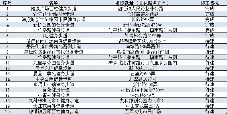 小松从区体育局得知,今年松江区为民办实事项目已陆续开工,目前已有6条步道完工,另有14条步道待建。