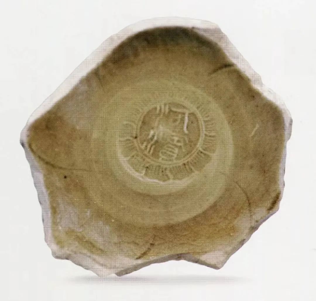 舜陶河滨的古典在宋瓷当中屡见不鲜,如现藏日本的一件北宋至金磁州窑白釉珍珠地牡丹纹枕背底涩胎处有“舜陶佳皿”墨书;浙江省丽水市缙云县大溪窑窑址出土了在内底捺印“清凉河滨”字铭的宋元时期青釉碗;浙江省龙泉窑大窑也曾采集“河滨”印铭标本。不过,最为常见的无疑要属在碗内心处押印“河滨遗范”字铭的龙泉窑青瓷碗,后者带单方框,口沿呈五花式,花口下方饰白泥堆线。