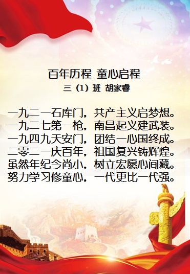 峥嵘岁月,中国共产党走过了100年的光辉历程,在中国共产党百年华诞之际,康宁科技实验小学的学生们积极参加“建党百年、童心向党”为主题的童谣创作活动,同学们以“我手写我心,我笔抒我情”创作出了一首首脍炙人口的童谣作品,用最真挚的情感祝福中国共产党建党百年。这些童谣内容丰富多彩,有的弘扬民族精神和时代精神,有的体现新时代好少年新风貌、新作为……