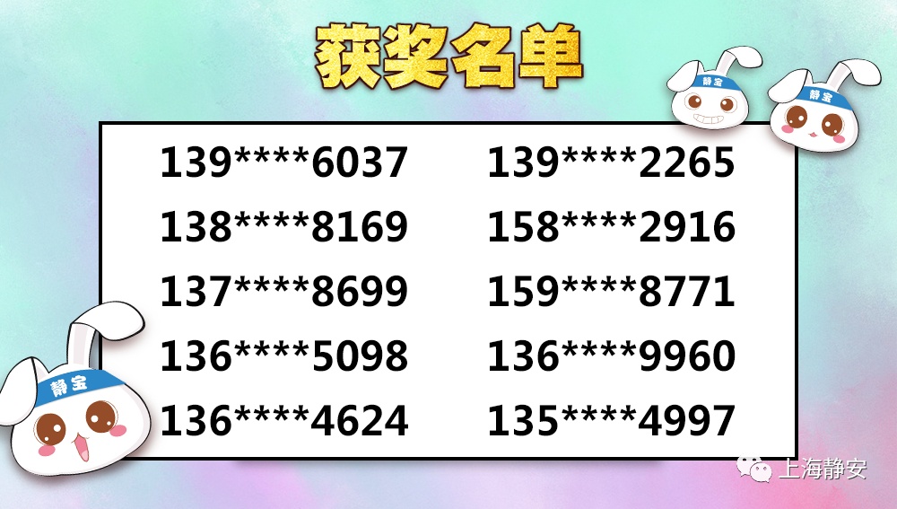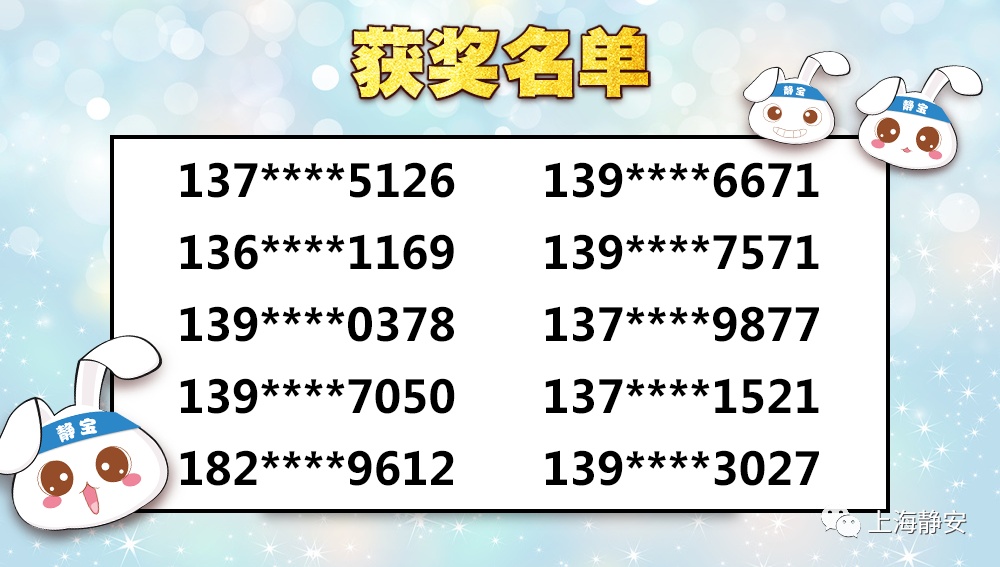 关注“上海静安”微信公众号,在后台回复“互动问题的答案+姓名+手机号码+收件地址”(未免快递派送出现问题,请务必填写正确的联系电话和地址哦),静宝将按照收到的回复顺序,以15为倍数,随机抽取10名幸运粉丝,送出静宝为你定制的折伞一把。