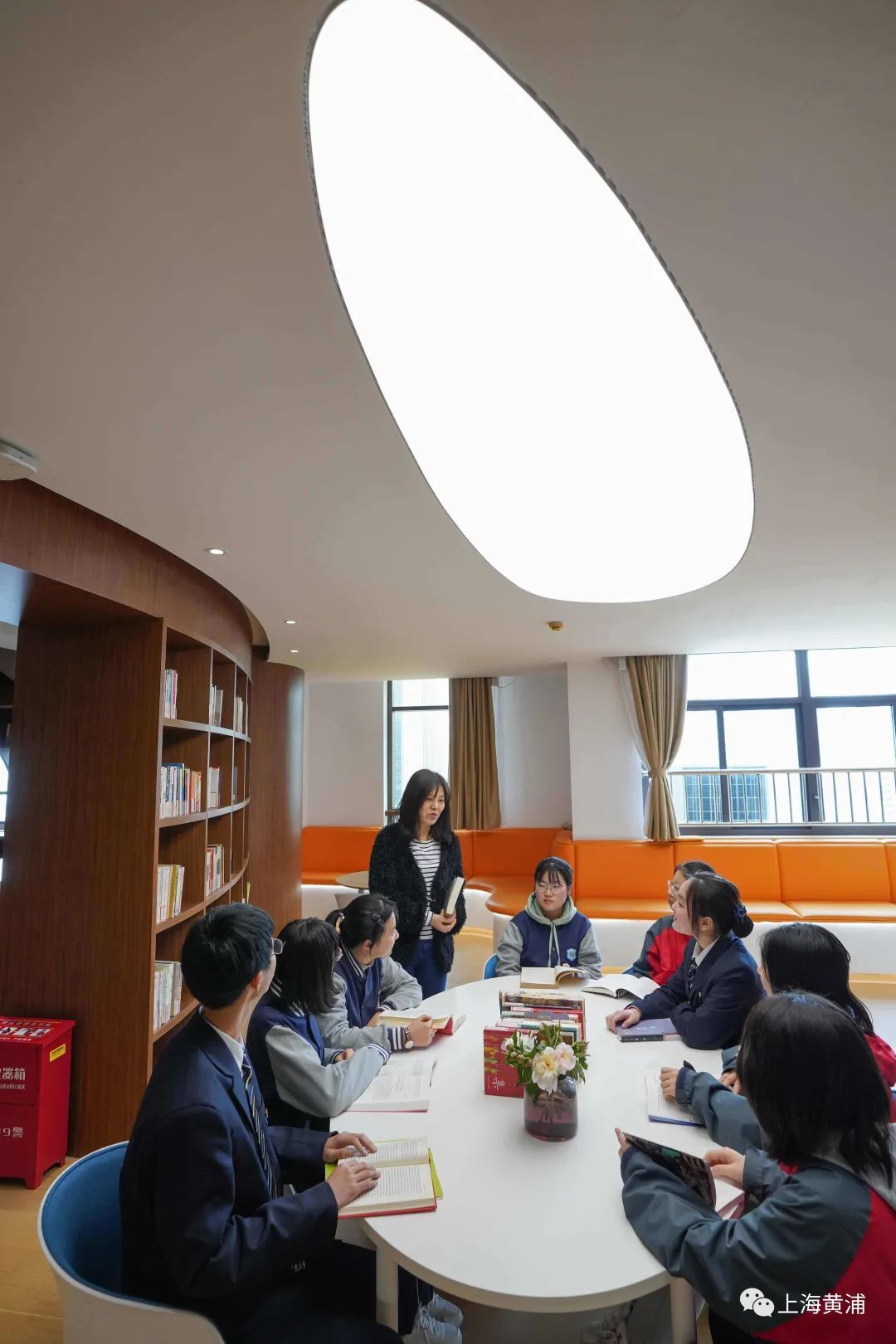 “境高志远,学融中外”,是上海外国语大学附属大境中学的校训。位于该校十楼的校园图书馆,便是取“志远”二字化为“致远”,名为“致远书苑”。