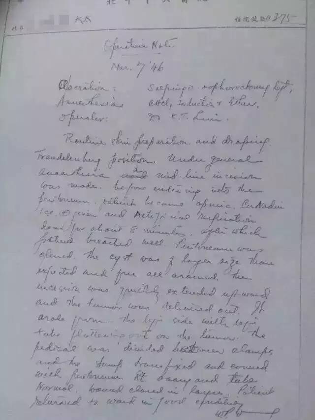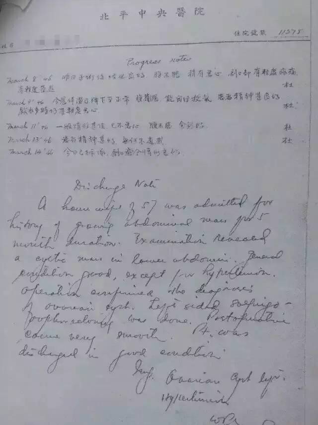 看到病历的落款,王医师震惊了:这不是我国现代妇产科泰斗林巧稚书写的病历吗!这份病历写于1946年,当时林巧稚在北平中央医院坐诊。