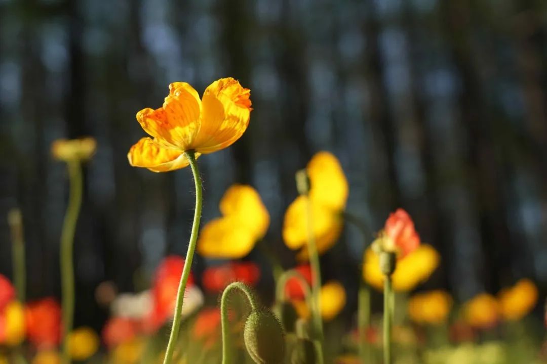 冰岛虞美人是来自欧洲的多年生草本植物,它拥有长而纤细的茎杆,花朵位于茎杆顶端,颇有一番遗世独立的味道,给人带来一种油画的美感。