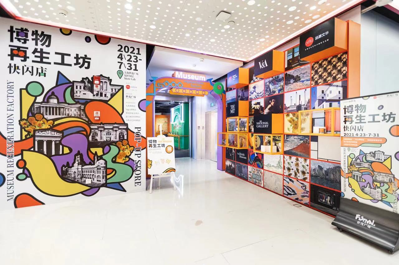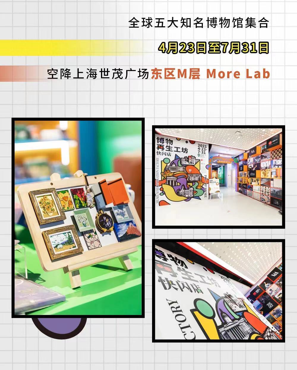与此同时,集结全球五大知名博物馆IP的“博物再生工坊”快闪店正式亮相上海世茂广场东区M层 More Lab潮空间,包括:大英博物馆、大都会艺术博物馆、维多利亚与艾尔伯特博物馆、波士顿美术博物馆和英国国家美术馆。快闪店以“大师Reborn”为主题,打造了“灵感仓储”、“经典装配线”、“波普制造间”及“再生成品室”四大区域。