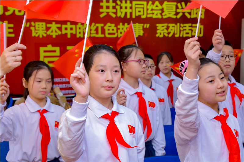 报童小学语文学科负责老师任怡徐佳介绍,这次选取自语文统编教材中的红色故事,内容从毛主席带领战士挖井,到邓小平爷爷植树;既有“为中华之崛起而读书”的铮铮誓言;也有主席的常人情感和超人情怀,以及无数英雄钢铁般的意志。“这些都是我们师生进行党史学习最好的素材,帮助学生打牢‘中国底色’,扣好人生的第一粒扣子,将红色基因代代相传。”