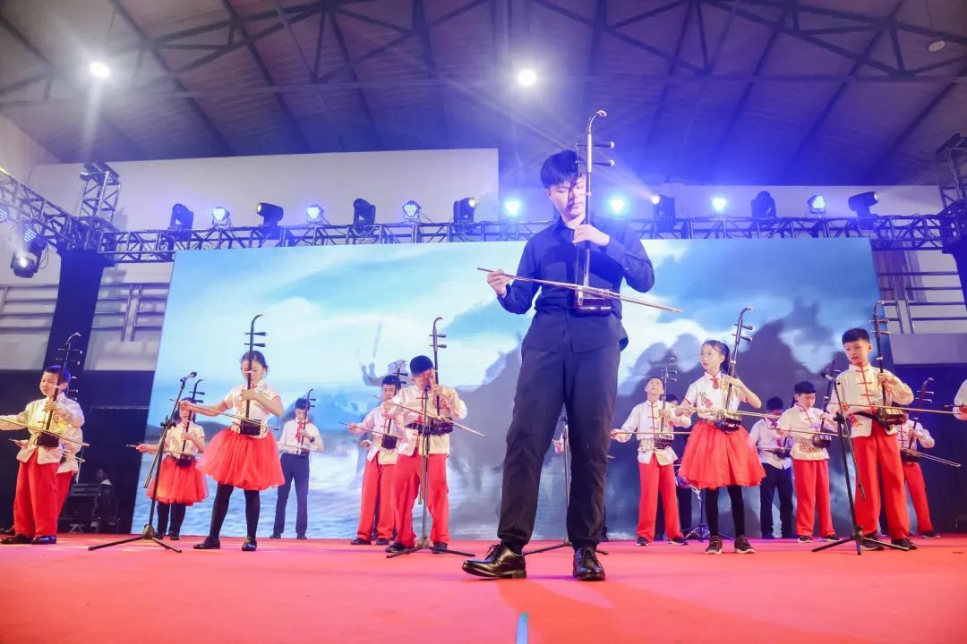 当江小学生以及历届毕业生和校友带来的现代二胡《赛马》的旋律响起,现场来宾的热情被江小民乐队的激情点燃。
