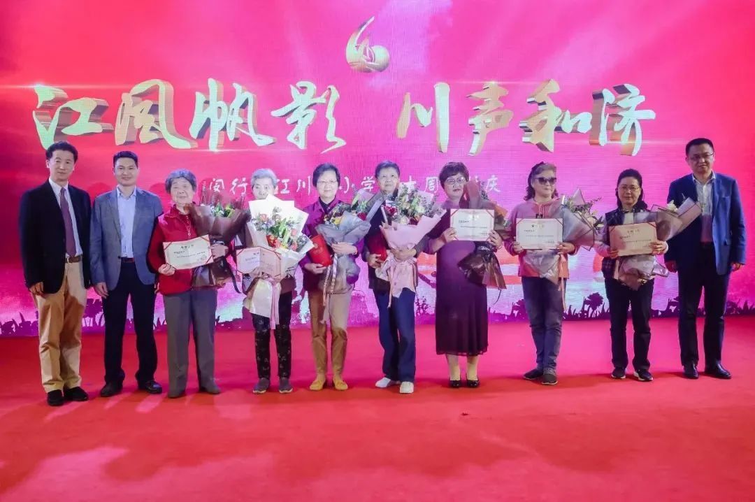 江小历届老领导代表出席了庆典活动,江小学子向曾经的老校长、书记们献上鲜花,也献上了赤忱的感恩之心。庆典活动上,当江川路街道党委书记王文辉,第五人民医院党委书记施晓军、院长吕飞舟为获得终身贡献奖的江小8位退休教师颁奖,并一起点亮会标时,全场响起了热烈持久的掌声。