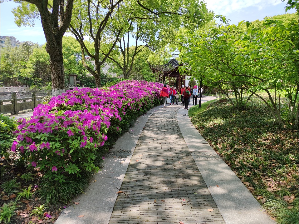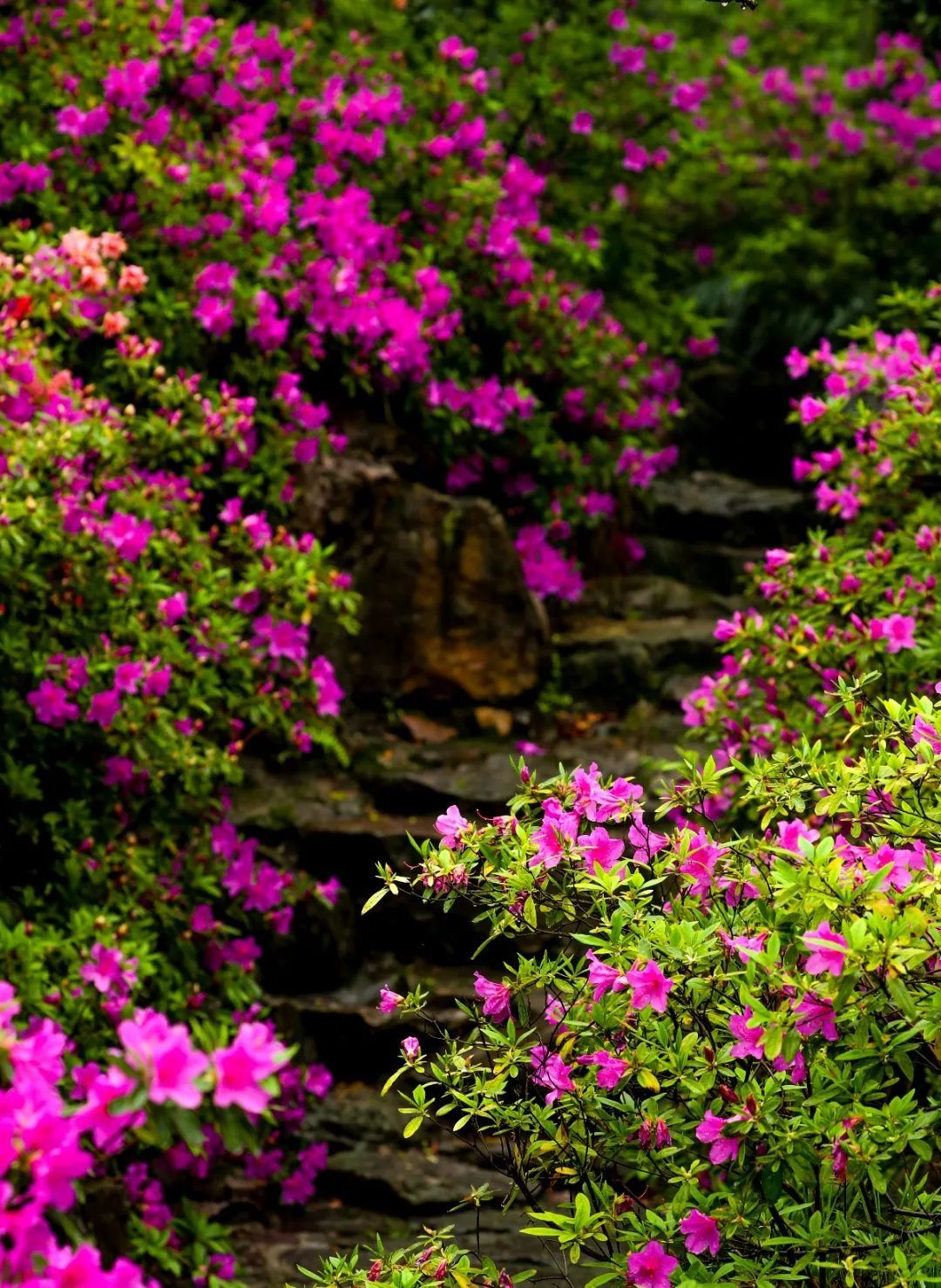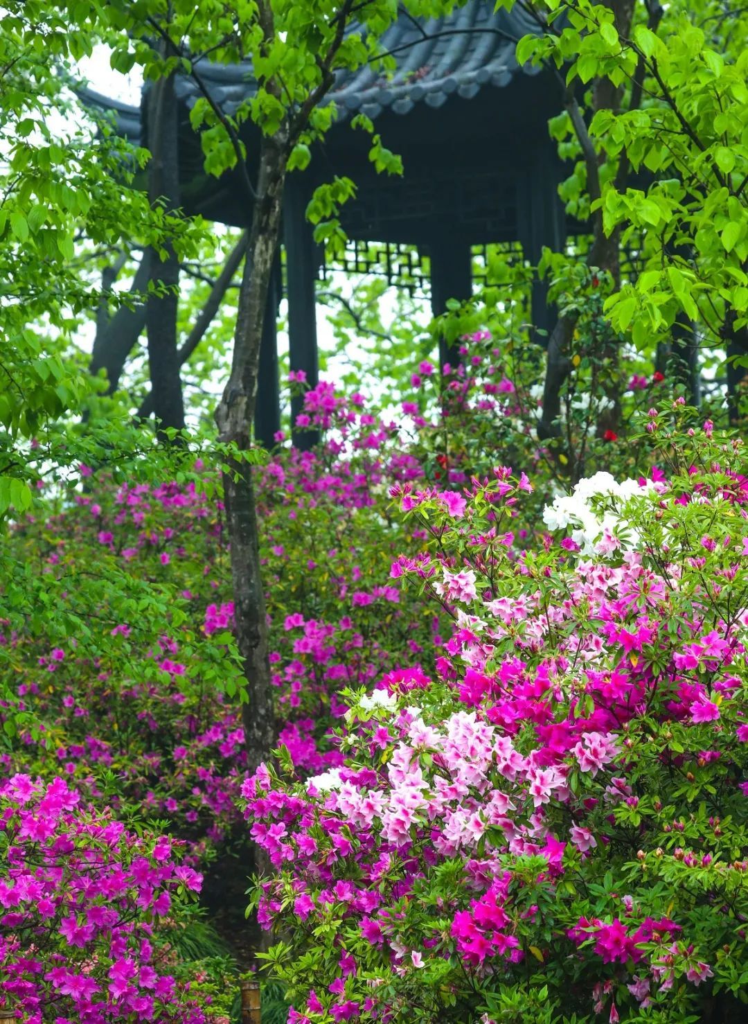 近期,上海曲水园内的杜鹃花迎来了盛花期,一簇簇争红斗艳花朵迎来了不少市民的前来观赏。漫步曲水园,满眼的绿色当中可以看到路边小道的杜鹃花恬静质朴,成簇成片,如锦如缎。屋子角落的杜鹃花开得热烈,给古朴的房子增添一丝色彩,在不同的环境和搭配下,显现出它不同的气质。