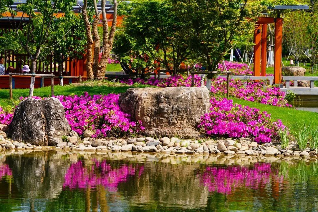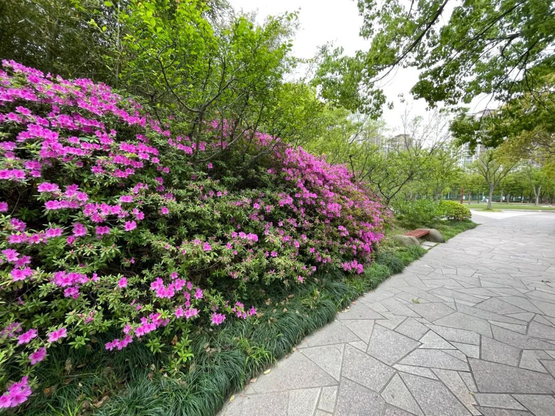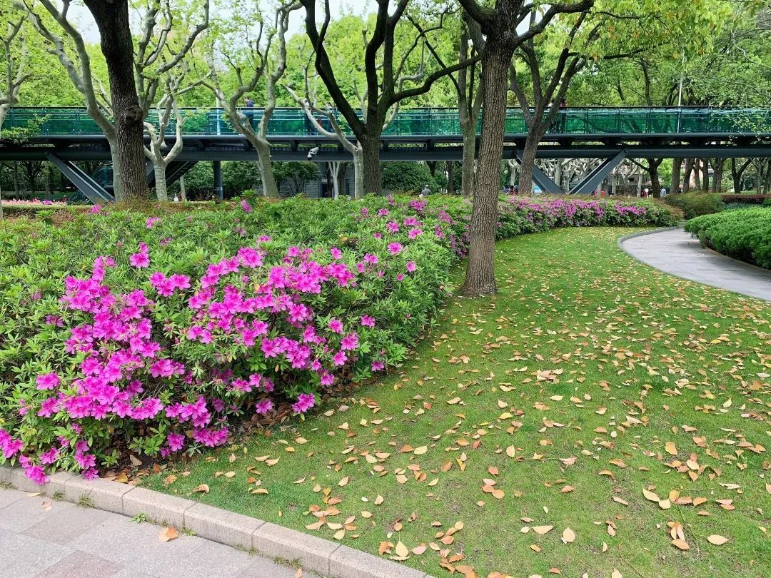 新江湾城公园自2004年起就开始种植杜鹃,目前园内种植的多为锦绣杜鹃,每年春季,园内700平方米锦绣杜鹃随风摇曳,给市民带来一场场视觉盛宴。最佳观赏点位为公园入口北侧靠近竹林外围的区域。
