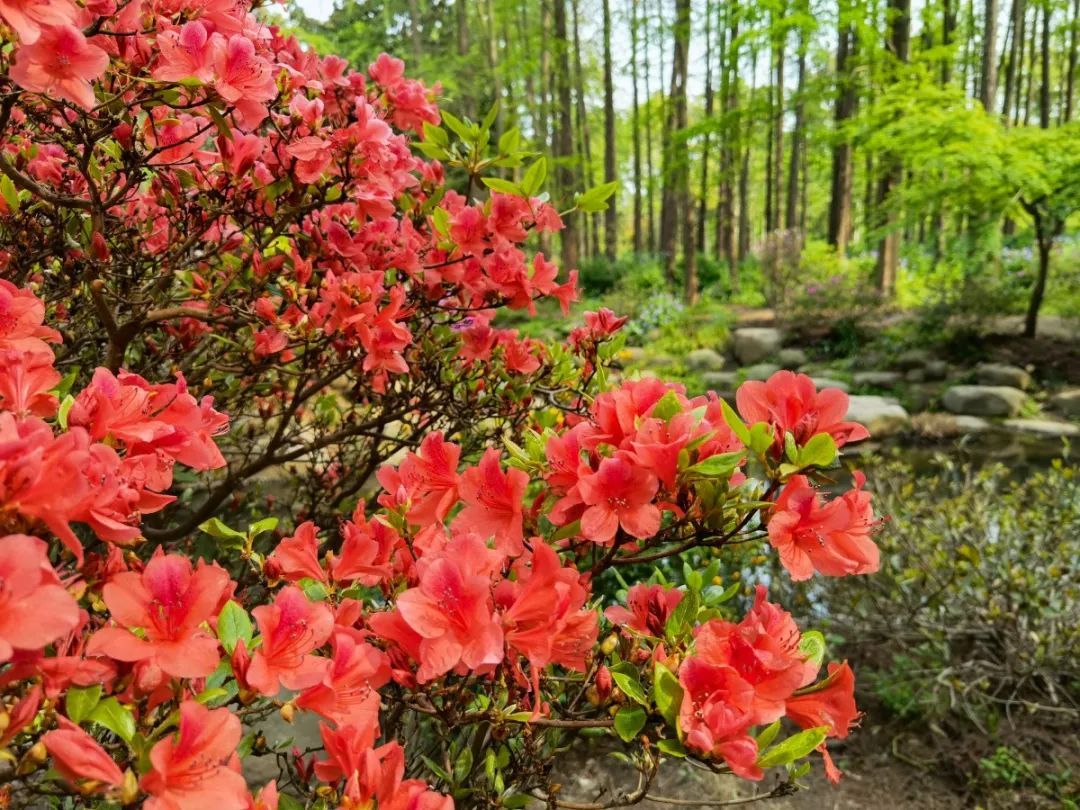 上海滨江森林公园的杜鹃园是全国城市公园里最大的杜鹃专类园,在2021杜鹃展期间,园内200多个品种、20000余株杜鹃花将陆续绽放。这里的杜鹃花迎风摇曳,一抹抹“杜鹃”红,迎着阳光自由绽放,十分抢眼。