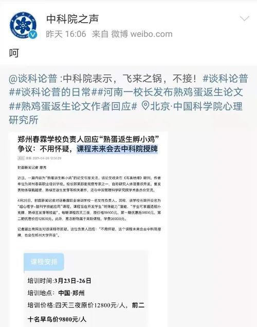 近日,一篇关于“熟鸡蛋返生孵化雏鸡”的论文引发网民关注。该论文刊登在《写真地理》期刊上,第一作者为河南郑州市春霖职业培训学校校长郭平。