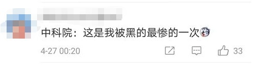 随后,中国科学院官方微博@中科院之声 转发了相关报道的截图,配字:“呵”。