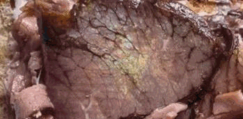 如果牛肉表面呈现暗淡的绿色,或是还没切开就能看到绿色,这可能肉质腐败所造成的。