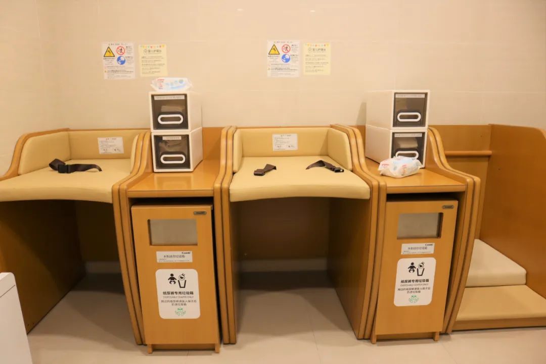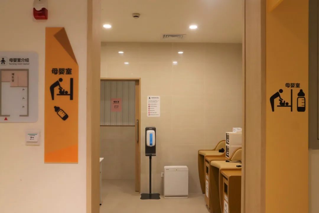 母婴室还在哺乳室与更换尿布的公共空间之间,用一道木质拉门做了隔断,父母带娃出行都能享受到便利。