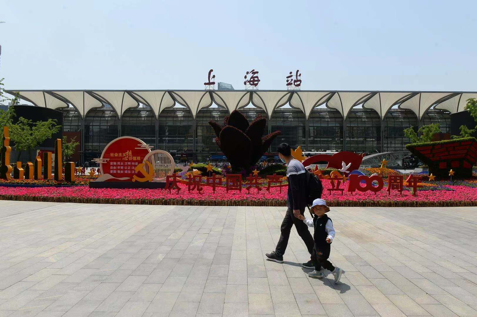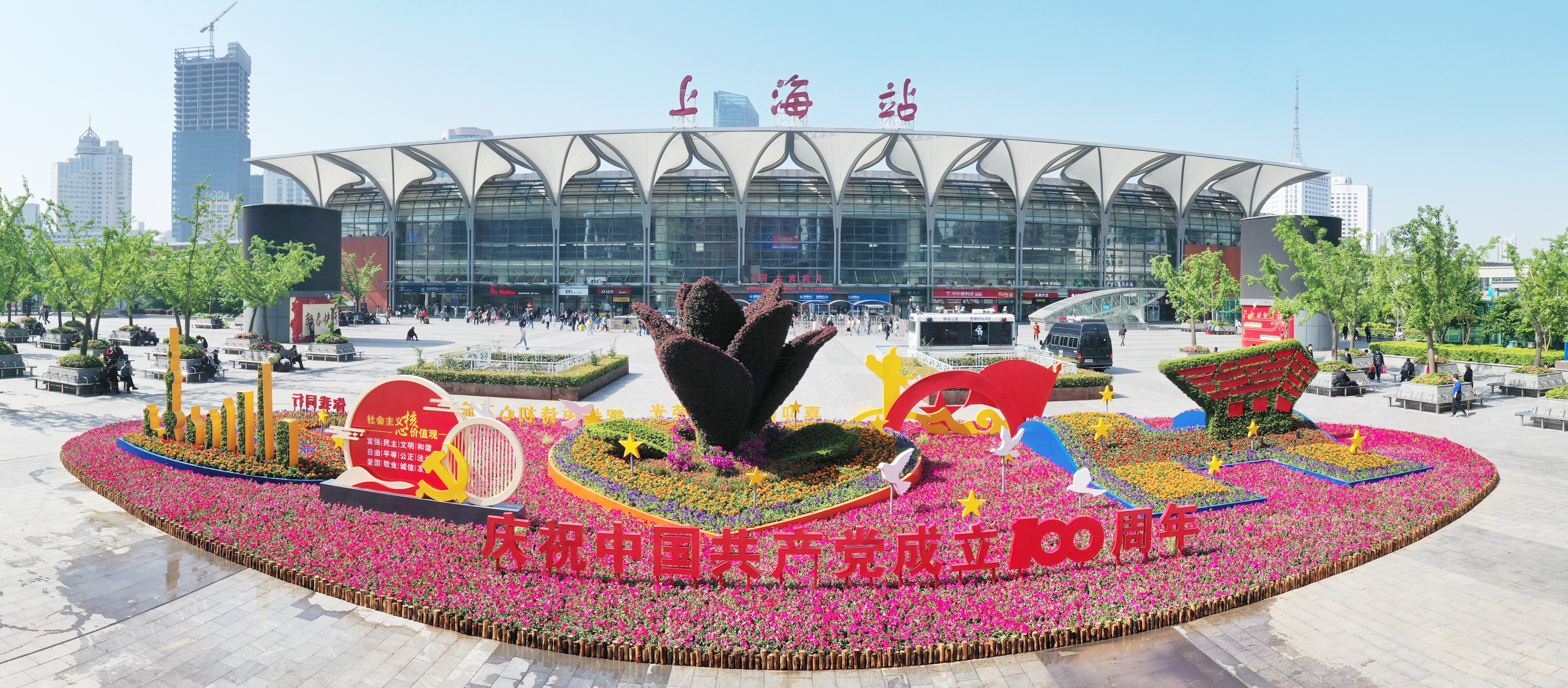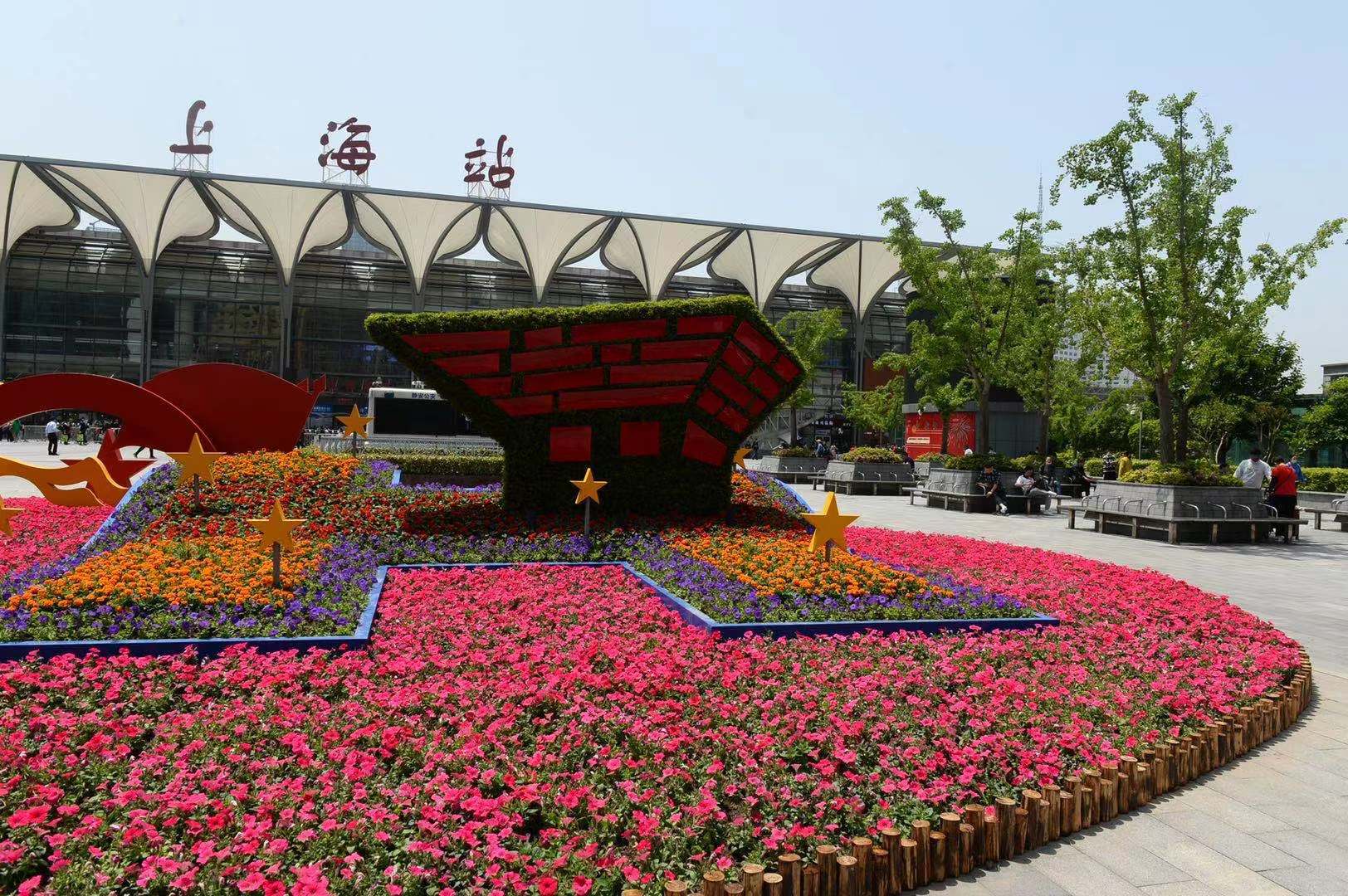 立体花坛面积400平方米、绿雕绿化面积110平方米、用花量60000棵……近日,“庆祝中国共产党成立100周年”立体花坛在铁路上海站北广场落成。时值“五一”小长假客流高峰,吸引了不少游客驻足观赏拍照。