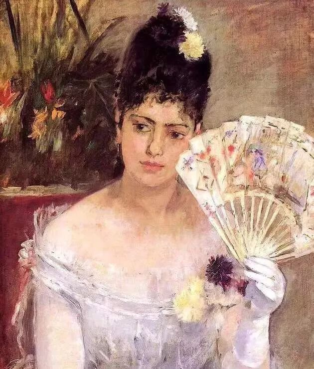 莫里索在马奈的影响下,画风明亮起来,她也最终成为印象派的代表画家。1874年,莫里索就参加了印象派的第一次展览,这次展览中的《持扇女人》参加了印象派的第二次展览。