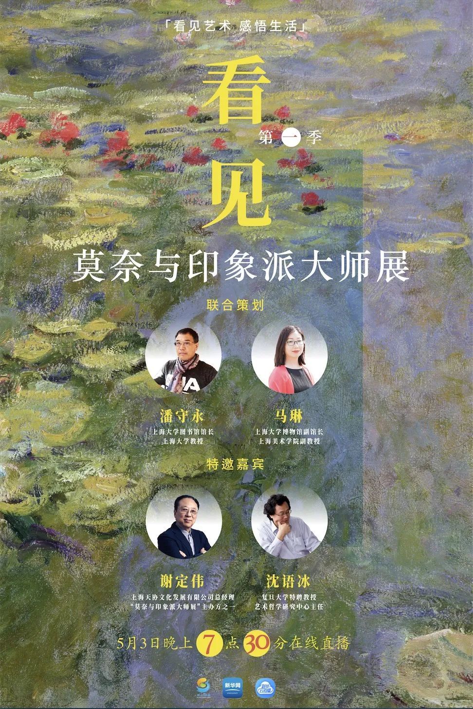在展览现场,《看见》栏目主持人马琳将与上海天协文化发展有限公司总经理,“莫奈与印象派大师展”主办方之一谢定伟先生、复旦大学特聘教授、艺术哲学研究中心主任沈语冰一起在展览现场为你深度解读印象派大师们的作品、印象派展览的情况、印象派画家之间的交友关系、玛摩丹莫奈博物馆的收藏以及主办方举办展览期间的背后的故事,带你走进印象派的艺术世界。