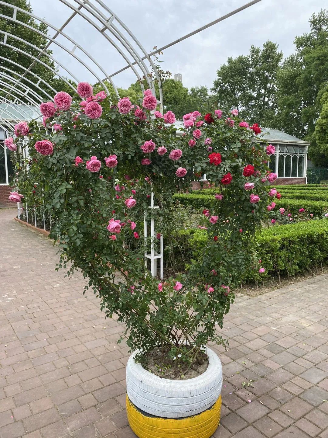 据悉,中山公园于1916年始建“月季园”,经过两次扩建改造,花园占地面积已达到380平方米。据园方介绍,“月季园”内总共种植了庭院月季、丰花月季、多花月季、攀援月季等50余个月季品种,共1671株。