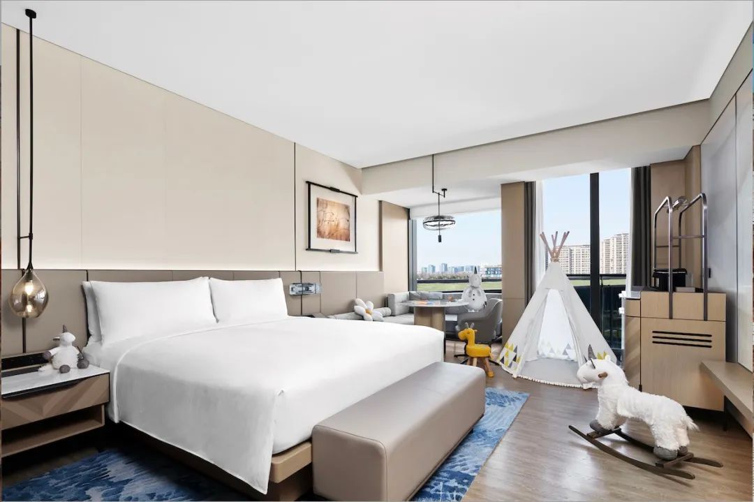除此之外,酒店推出的亲子主题客房,入住轻松享受带娃出游的乐趣,大朋友也能再次体验一下童年时光。酒店的儿童俱乐部还有“圈粉无数”益智趣味设施,解放爸妈双手,才是五一休假的正确方式。