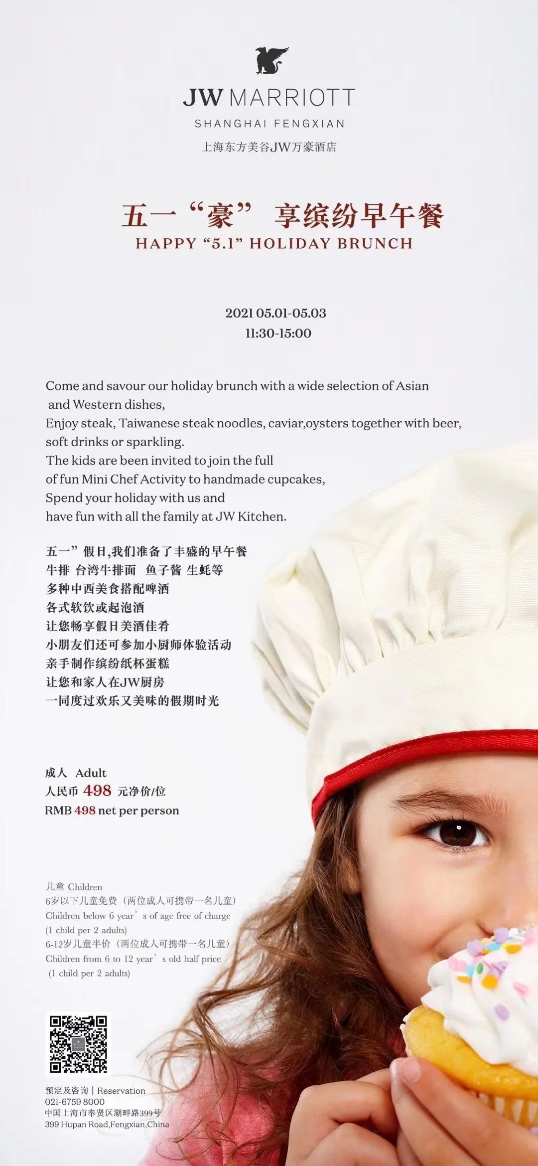五一期间, 上海东方美谷JW万豪酒店举办“小厨师体验活动”,让小朋友感受亲手烘焙的乐趣,为全家打造假日悠然时光。