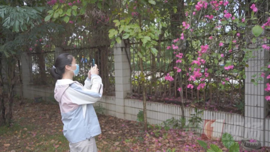 到树丛中赏花拍照