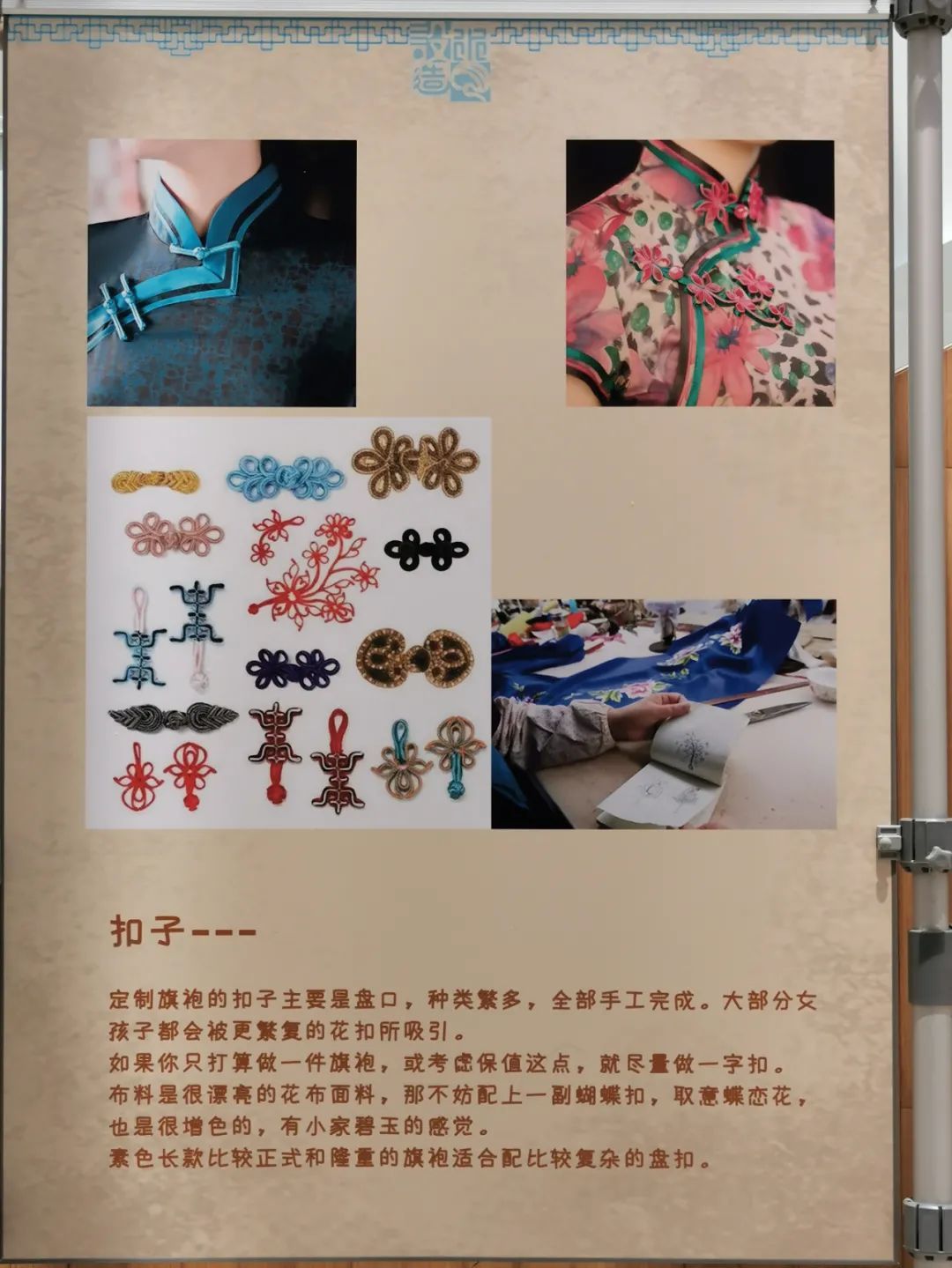 ▲旗袍展示的旁边还有工艺的介绍