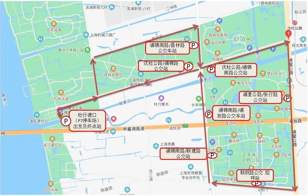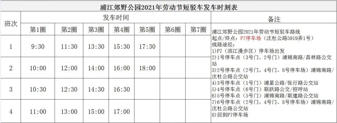 为方便游客绿色出行,浦江郊野公园五一假日期间提供短驳车服务,详见如下: