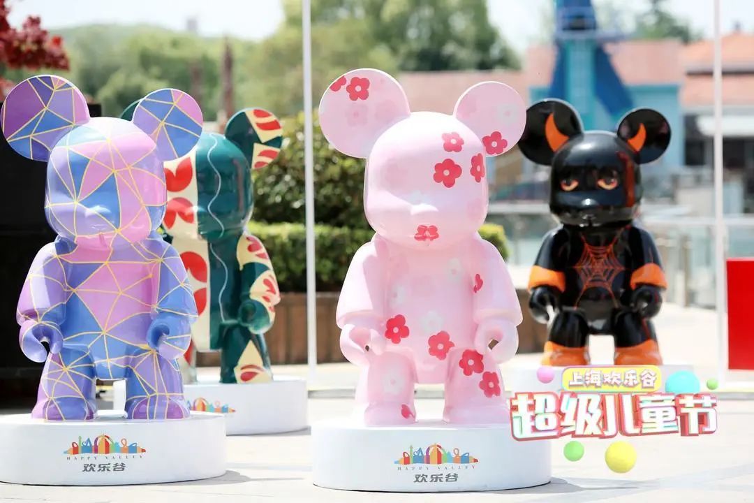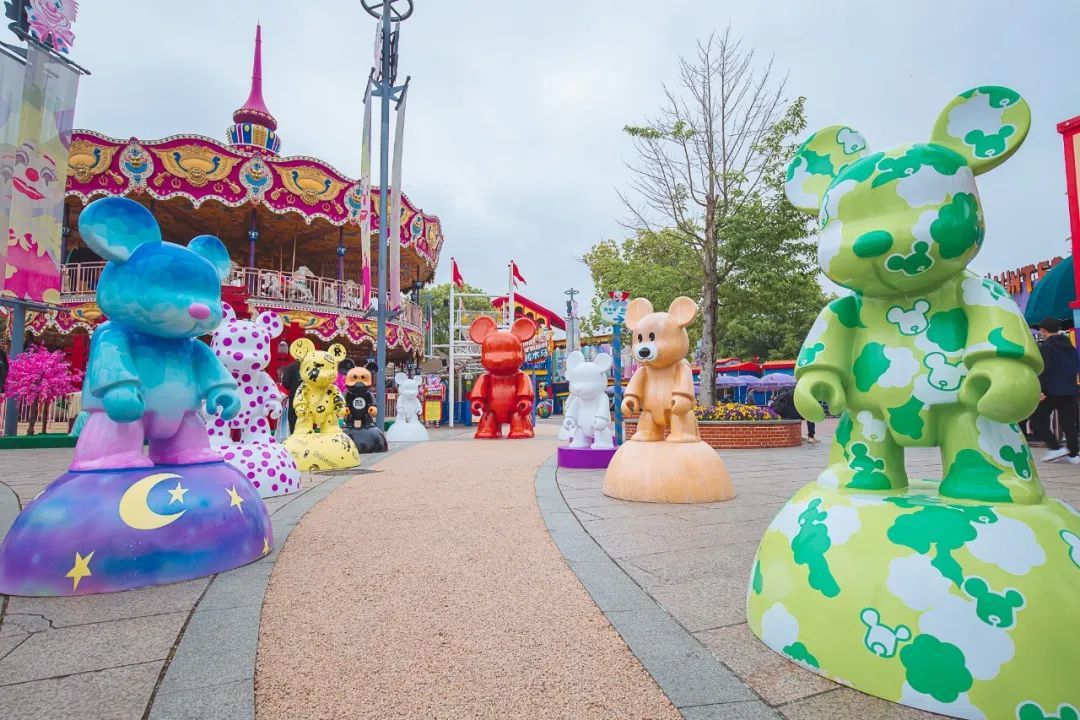 5月1日起,上百只潮流Qee熊、系列周边列队来袭,遍布全园,涂鸦风、波普风、孟菲斯风、中国风……百变造型强势吸睛。