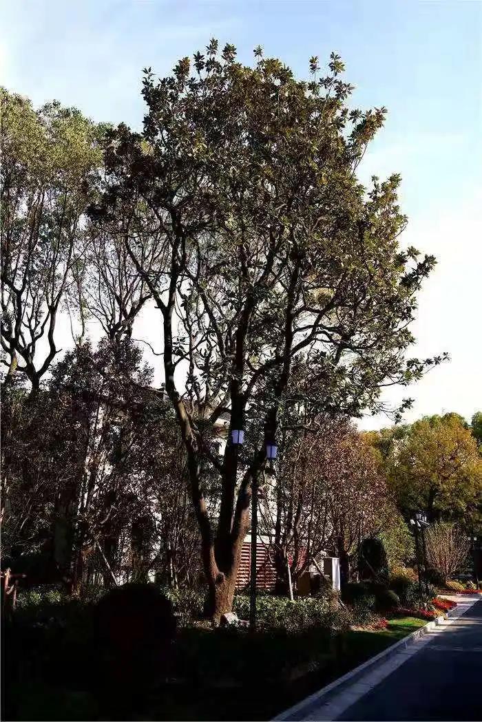 0744广玉兰树枝挺直壮丽,可以庇荫。花开的季节可以让人感受到空气的暖意,是宾馆园区景观价值相当大的树种之一。该树位于员工餐厅前,餐厅名的玉兰楼也是因此而来。