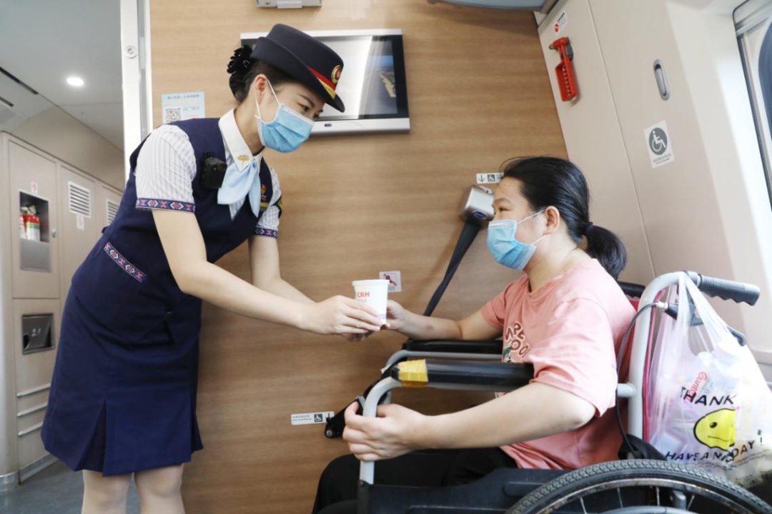列车上为重点旅客提供专属爱心服务。如遇其他问题,请随时呼叫列车上的工作人员,他们会为有需要的旅客提供问询解答、广播寻医、预约接站等贴心服务,让旅客出行更加美好。
