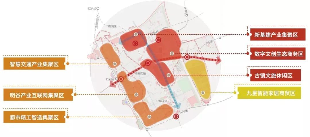 下一步,七宝镇将在“一核一区一带”的规划基础上,深挖优势产业、探索发展路径、优化营商环境,逐步形成以古镇文旅休闲区、数字文创生态商务区、新基建产业集聚区、九星智能家居商贸区、都市精工制造集聚区、明谷产业互联网集聚区、智慧交通产业集聚区为代表的七大产业新集群,打造“新七宝”产业基地。