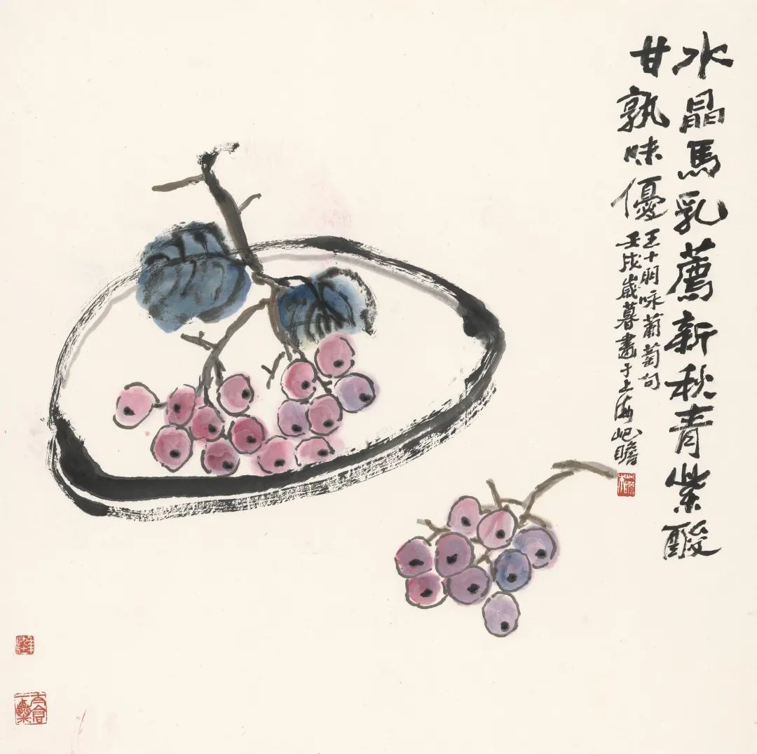 朱屺瞻《水晶马乳(葡萄)》67.5x67.5厘米