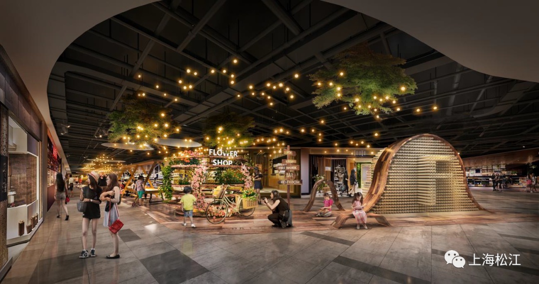而在“烟火气场”的上层,是一处占地面积约6500平方米的户外花园,由旋转楼梯相连接。“根据规划设计,在花园的中央区域将开启三个明亮的天窗,实现室内与室外的沟通联系,更好地体现街区形态。”松江印象城相关负责人告诉小松,届时顾客可以在这里寻觅各种美食,也可以映着星空散步。