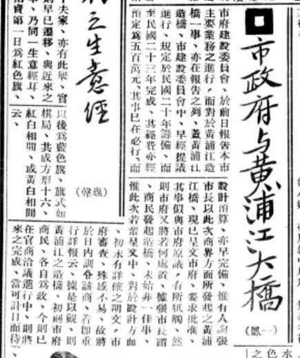 1930年代初关于筹建黄浦江大桥的报道