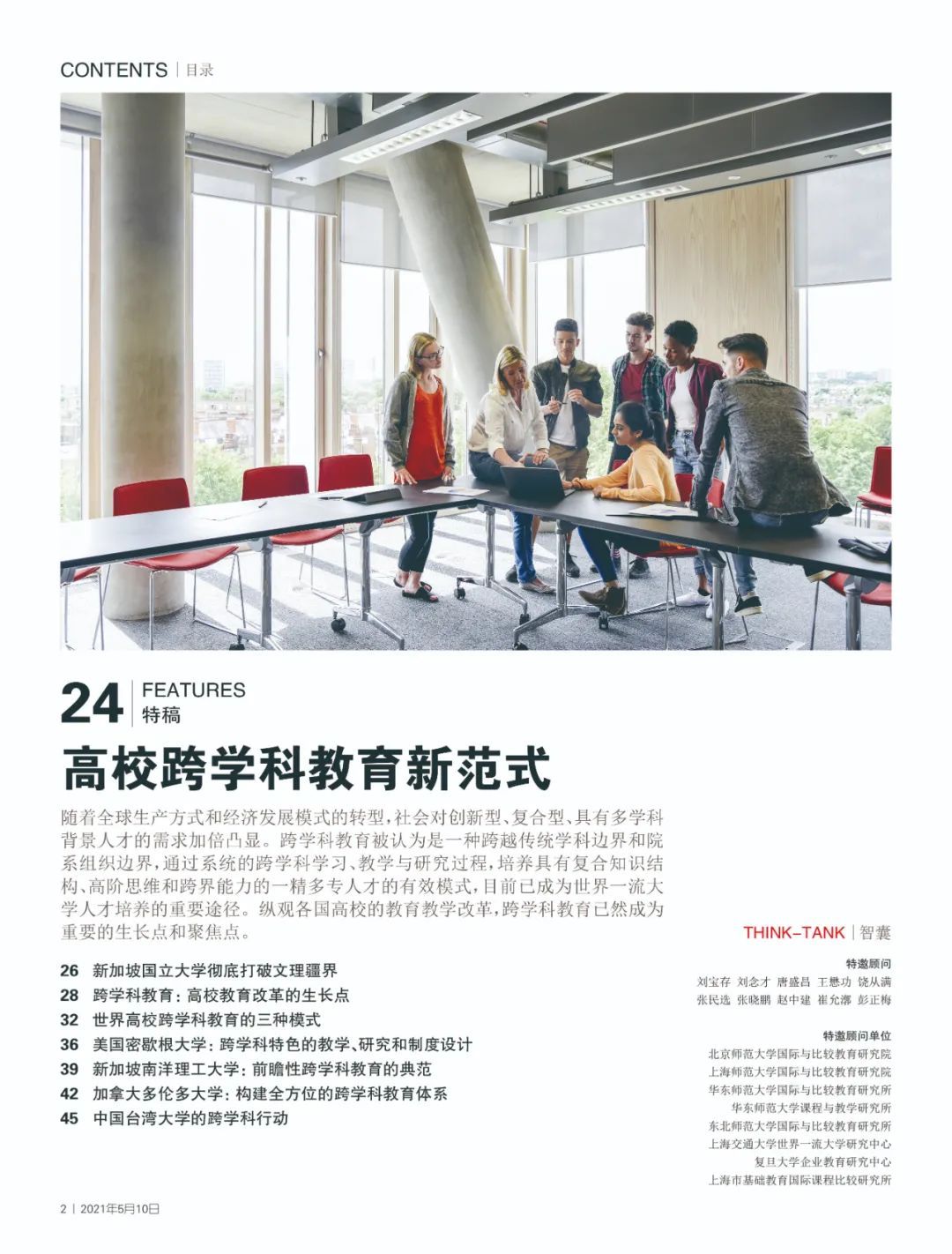 本期《上海教育·环球教育时讯》“特稿”栏目聚焦高校跨学科教育新范式,呈现在不同国家的高等教育系统中的实践模式,其中包括美国密歇根大学的跨学科特色的教学、研究和制度设计、新加坡南洋理工大学的前瞻性跨学科教育探索、加拿大多伦多大学构建的全方位跨学科教育体系以及中国台湾大学的跨学科行动。
