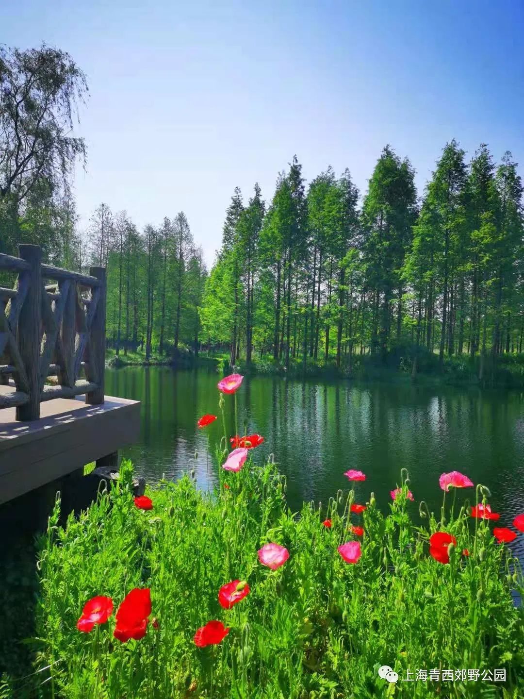在青西郊野公园的桃花渡和水上森林木栈道边,一种娇艳的花儿正招摇着迎风绽放,这便是虞美人。