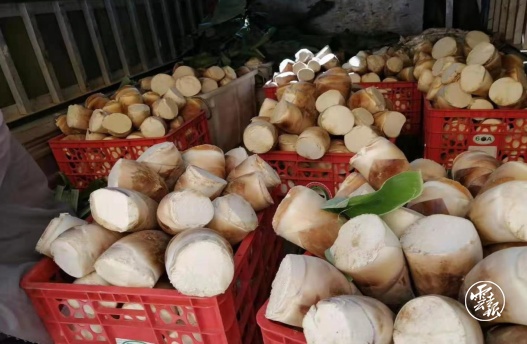 唐家村地处澜沧江畔,沿江光热条件好,气候多雾湿润,适宜甜龙竹生长,云遮雾罩下的竹林造就了味甜鲜嫩的甜龙竹笋。“我们唐家村自1998年起就开始种植甜龙竹,近年来,通过组建合作社、引进新品种、发展订单农业等方式,竹笋产业不断壮大。”唐家村党总支书记李相维介绍,目前,全村种植甜竹笋的农户有298户,种植总面积8000多亩,随着种植规模的不断扩大,唐家村开始探索发展甜竹笋生态基地建设和精深加工。“我们村正在计划建设一个甜竹笋加工厂,目前厂址已经选好,进一步壮大我们村的竹笋产业,巩固脱贫攻坚成果,助推乡村振兴。”