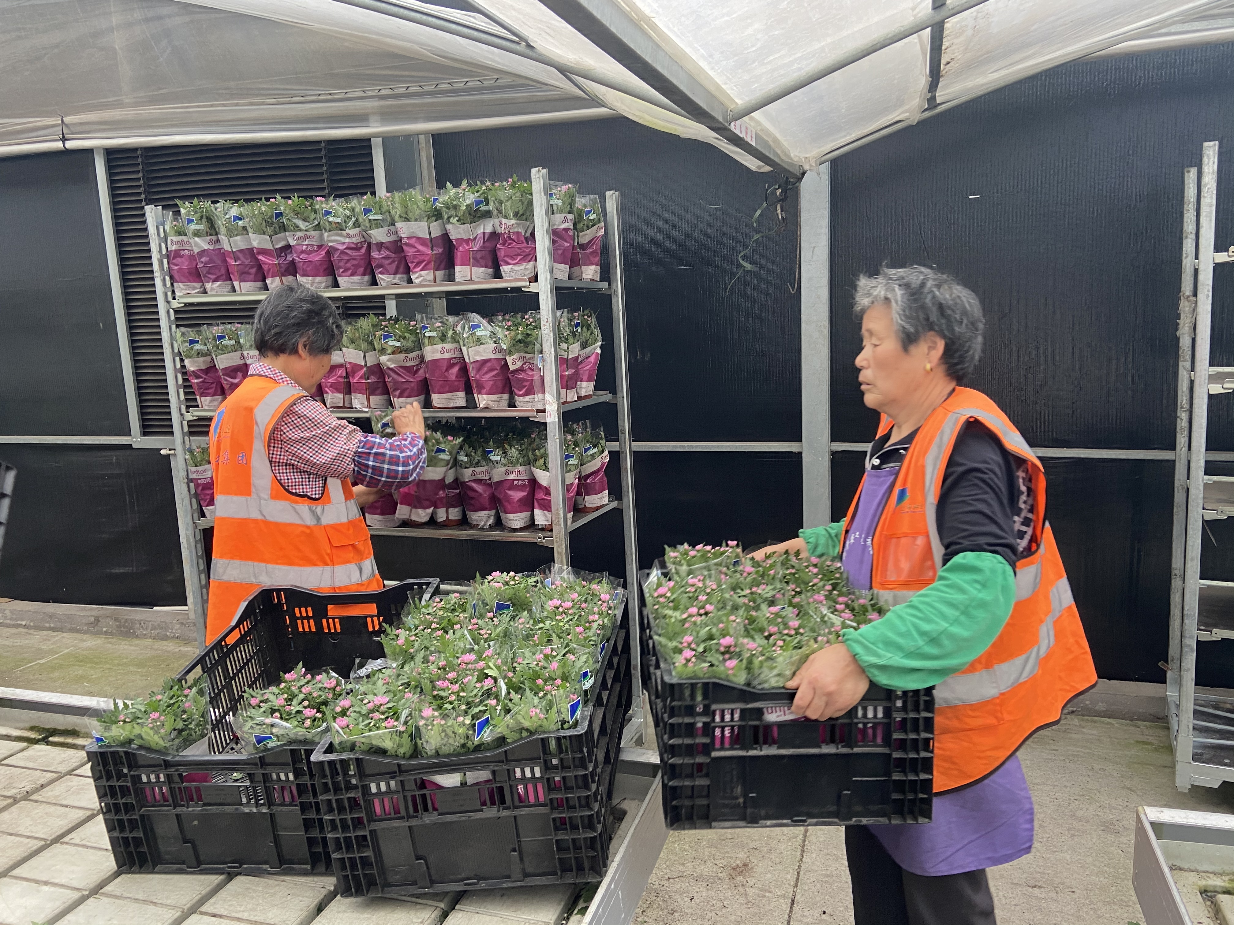 从今年1月份开始,五厍花卉基地的工作人员就开始进行花卉的培育工作,根据不同种类花卉的花期进行分期种植。大部分花卉喜暖喜湿,育苗和成长期的温湿度控制尤为重要,种植人员通过温度、光照、水分等因素的调控,将花卉培育出最好的状态。