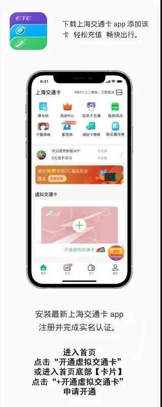 在首页点击“开通虚拟交通卡”,或进入首页底部的“卡片”菜单,点击“+开通虚拟交通卡”申请开通。